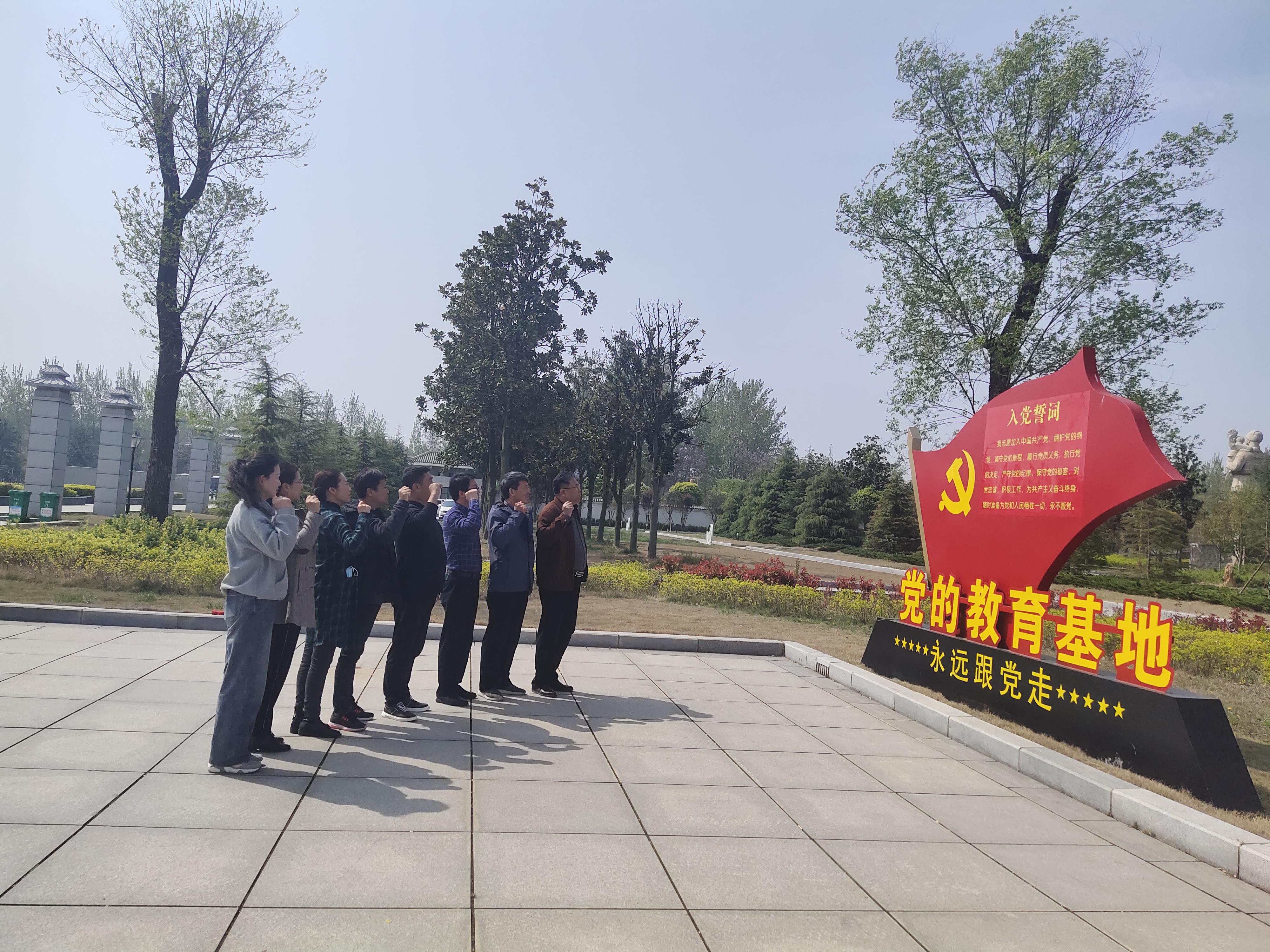 在紀念碑前,全體黨員共唱國歌后站立默哀,并向革命先烈敬獻花籃。面對黨旗,全體黨員莊嚴地舉起右手、握緊拳頭,重溫入黨誓詞,堅定“不忘初心、牢記使命”的信念。