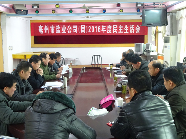 根據(jù)省公司黨委統(tǒng)一部署,1月18日亳州市公司黨委召開2016年度民主生活會,市公司黨委書記李文俊主持會議并講話,市公司董事長、經理、局長榮立華出席會議,三縣公司黨政主要負責同志參加民主生活會。