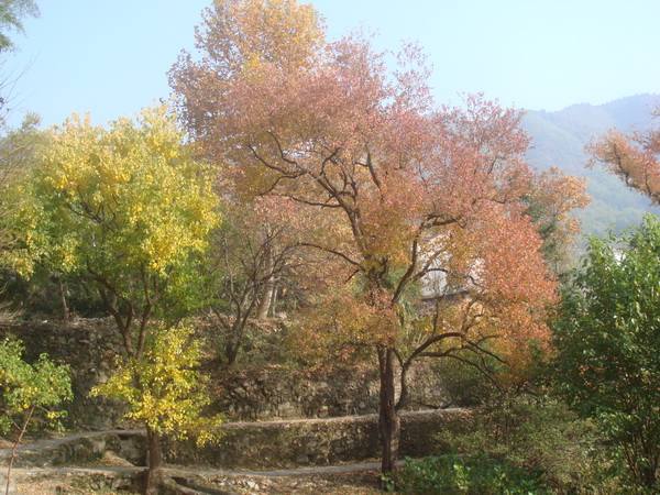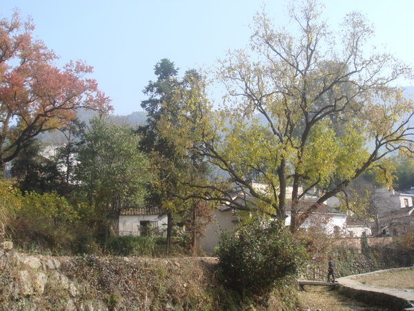 在往塔川村去的路上,此次當(dāng)仁不讓的做起了我們的導(dǎo)游的黟縣同學(xué)告訴我們:塔川村依山而建,層層疊疊,錯(cuò)落有致,遠(yuǎn)遠(yuǎn)望去,就好象一座寶塔矗立在山谷之中。故為之“塔”。山谷里,一條清澈的小溪穿村潺潺流過,給小村帶來無窮靈氣,故為之“川”,兩個(gè)合起來,即為“塔川”。塔川古樹到處都是,以烏桕樹為主,還有銀杏樹,香榧樹、樟樹和楓樹等等,每到秋季,滿山的樹葉好似不經(jīng)意被打翻的顏料桶,色彩斑斕,而極具徽派特色的塔川村古民居掩映其中,端的是美不勝收。