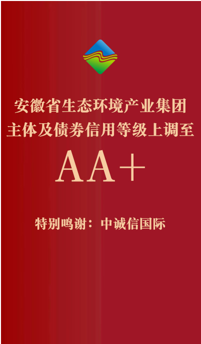 10月25日,經中誠信國際信用評級有限責任公司評定,安徽省生態環境產業集團有限公司主體信用等級、債券信用等級均上調至AA+,在集團公司轉型后,信用評級進一步提高,評級展望穩定。