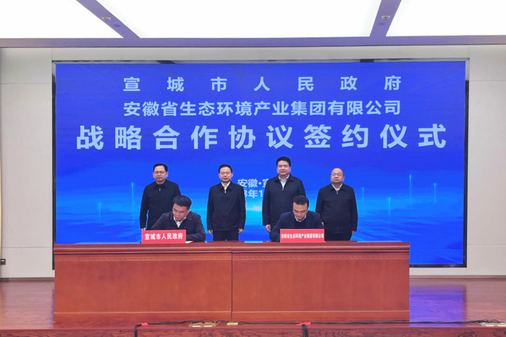 12月5日,省生態(tài)環(huán)境集團與宣城市人民政府簽訂戰(zhàn)略合作協(xié)議。宣城市委書記李中,集團公司黨委書記、董事長羅太忠出席簽約儀式并講話。