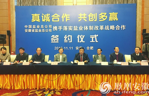 2016年11月11日,安徽省鹽業總公司與中國鹽業總公司在合肥簽署戰略合作協議。安徽省國資委、經信委等部門領導,中國鹽業總公司黨委書記、董事長李耀強,安徽省鹽業總公司黨委書記、總經理詹先豪等領導共同出席簽約儀式。中國鹽業總公司所屬中鹽上海、中鹽安徽、中鹽長江、中鹽金壇、中鹽新干、中鹽舞陽等二級企業主要領導也共同參與了此次活動。