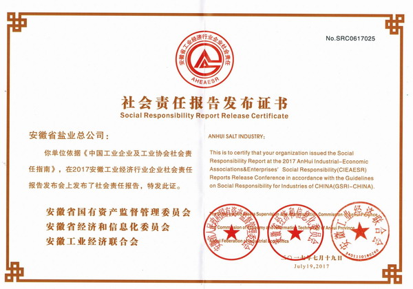 報告從責任管理、食鹽安全、轉型發展、黨的建設、依法治企等方面較全面、客觀的披露了安徽鹽業踐行國企職責、認真履行社會責任的總體情況,充分體現了安徽鹽業服務社會和廣大消費者的責任感和使命感,有力提升了公司對外形象和社會影響力。