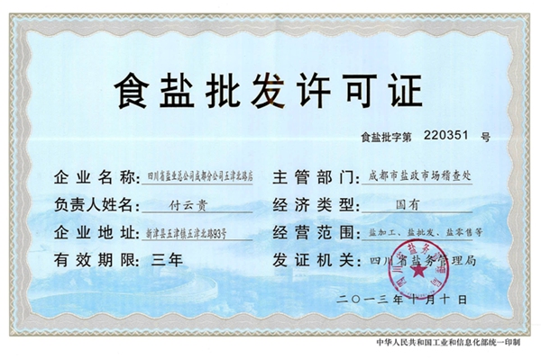 以往食鹽由持有《食鹽定點生產企業證書》的企業生產,出廠鹽產品由鹽業公司收購。鹽業公司作為本地唯一持有《食鹽批發許可證》的食鹽一級批發商,對其委托持有《食鹽轉(代)批發許可證》的中間批發商及零售商、食品加工用鹽單位批發供應食鹽。以銷售渠道單向長度計的中間批發商分食鹽二級及或還有三級批發商,其持有的《食鹽轉(代)批發許可證》進貨渠道項目,載明為委托批發的“鹽業公司”。