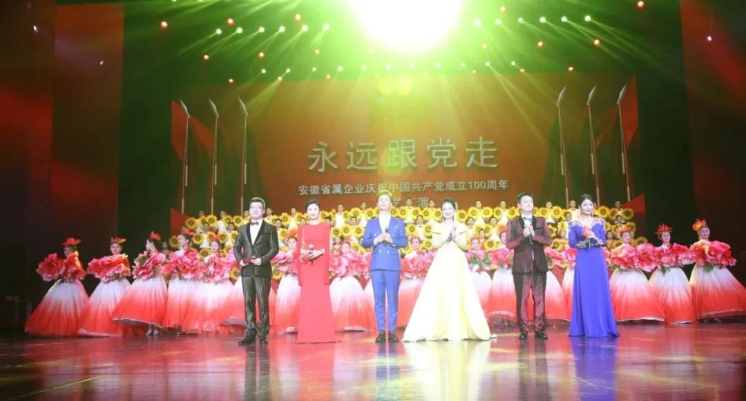 6月18日下午,“永遠跟黨走”省屬企業慶祝中國共產黨成立100周年文藝匯演在安徽大劇院隆重舉行。這次文藝匯演是我省省屬企業慶祝建黨100周年系列活動之一,也是一場生動的黨史學習教育課。省屬企業干部職工自編自演文藝節目,深情謳歌偉大的中國共產黨,回顧贊頌國有企業的創業史、改革史、發展史,真摯抒發安徽國資國企在黨的領導下奮進新征程的壯志豪情。