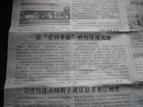 胡亞宏的病情牽動著鹽業(yè)公司領導和同事們的心,公司調動一切可利用的社會資源,全力為胡亞宏募集醫(yī)藥費。胡亞宏的病情同樣牽動了縣、市領導的心,分管副縣長親自過問,市鹽業(yè)公司、縣紅十字會、總工會、經信委系統(tǒng)工會向社會和市鹽業(yè)系統(tǒng)發(fā)出捐助倡議。該項活動獲得領導重視及各界人士積極響應,市鹽業(yè)系統(tǒng)內募集到2萬余元,市公司曹務軒經理和程裕副經理親自將募捐款送到胡亞宏家里,勉勵他堅定信心,戰(zhàn)勝病魔。