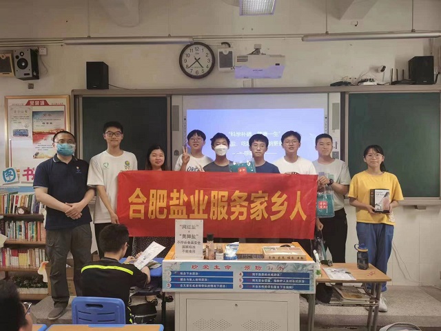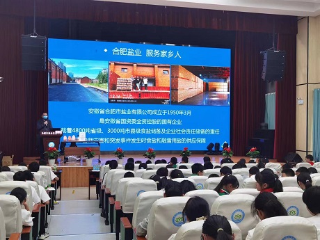 5月17日下午參與由瑤海區教體局聯合區衛健委舉辦的合理碘缺乏病防治知識講座,向瑤海區各學校餐飲負責人介紹科學補碘,倡導健康生活理念;同日,在淮合花園小學開展食鹽科普講座,在合肥鹽業參加發展公司“走下去,請上來”學習活動的發展公司員工也志愿參加了本次活動,為同學們開展服務工作。
