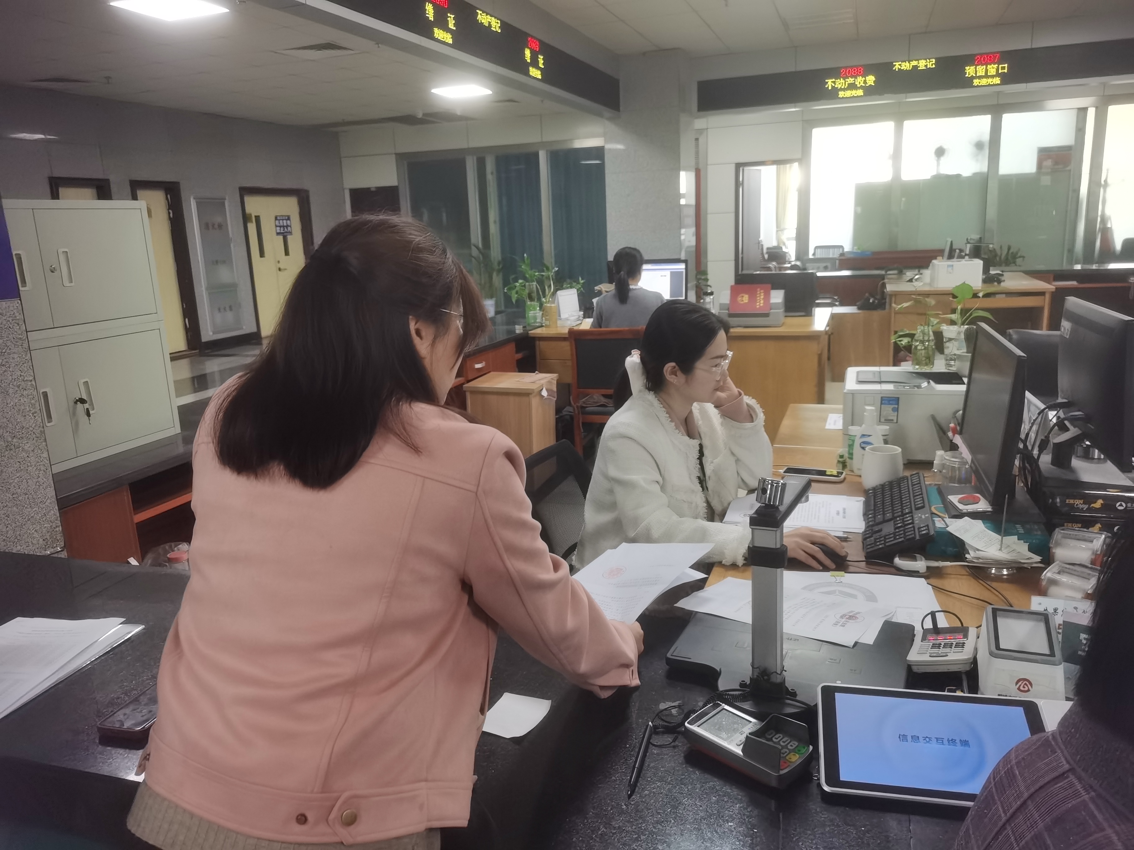 圖為小貸公司清收人員和律師在桐城市不動產中心排查被執行人財產信息。