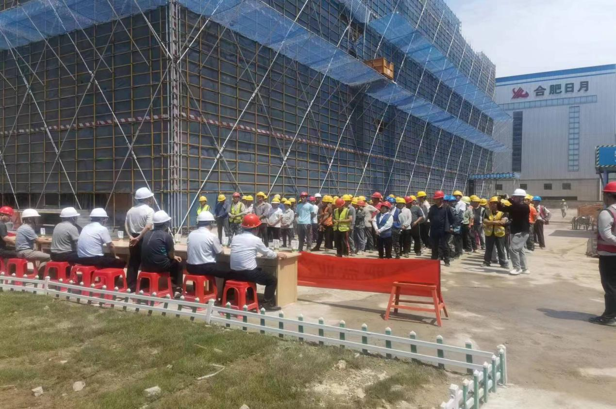 6月3日上午,建設單位合肥市鹽業公司及代建單位鹽業地產集團,監理單位福建恒禾項目管理有限公司項目部,施工單位安徽楚江環境建設有限公司項目部,共同開展安全月啟動儀式。項目負責人向工人介紹剩余工程的重大危險源,1、2號樓二層內支撐拆除、主體外架拆除及塔吊拆除,重點強調,要注意安全的預防和應對方法,提高工人們的應急處理能力,提高安全意識。