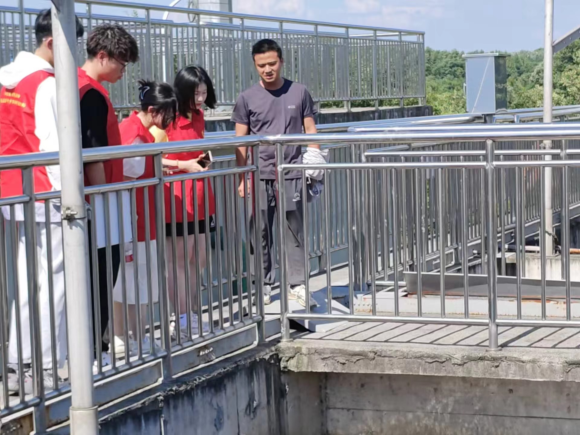 7月4日下午,河海大學志愿者一行到環境科技集團所屬項目公司立弘水務開展江蘇省大學生在行動暨志愿者千鄉萬村環保科普行動。