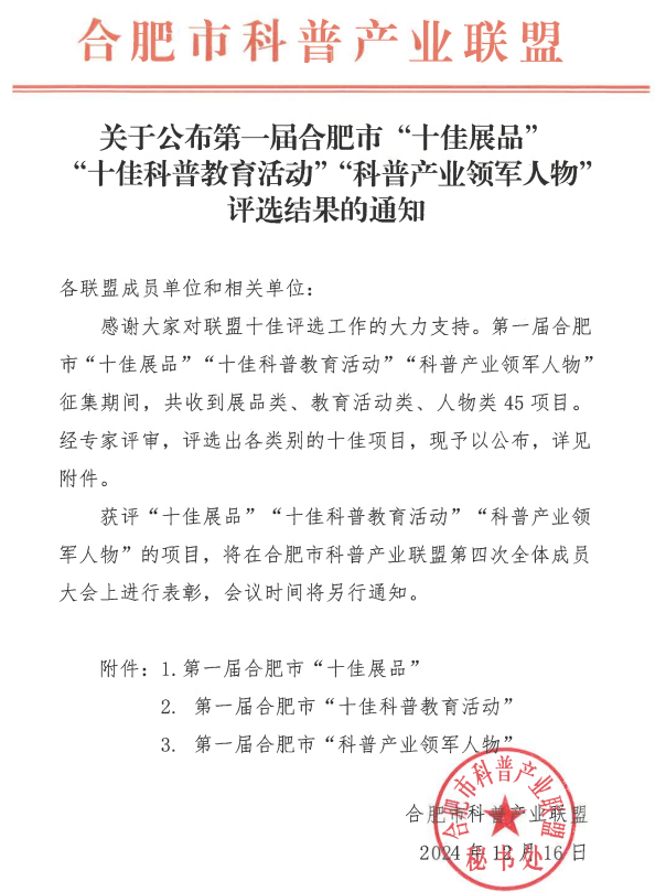 “鹽”學(xué)之旅科普志愿服務(wù)活動(dòng),還榮獲過“2024年度長(zhǎng)三角優(yōu)秀科技志愿服務(wù)品牌活動(dòng)”“2024年合肥市志愿服務(wù)大賽銀獎(jiǎng)”等殊榮,并獲得中共合肥市委社會(huì)工作部5000元的項(xiàng)目資金支持。